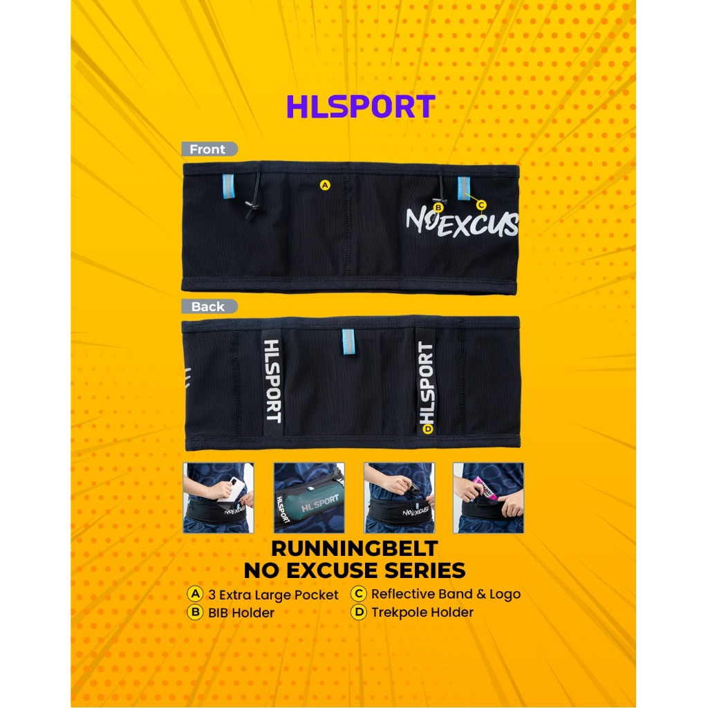 TERLARIS HLSport No Excuse - Running Belt - Tas Pinggang Lari - Waist Running Bag Band Lari Anti Goyang Sabuk lari High Elastiscity Ultra Light