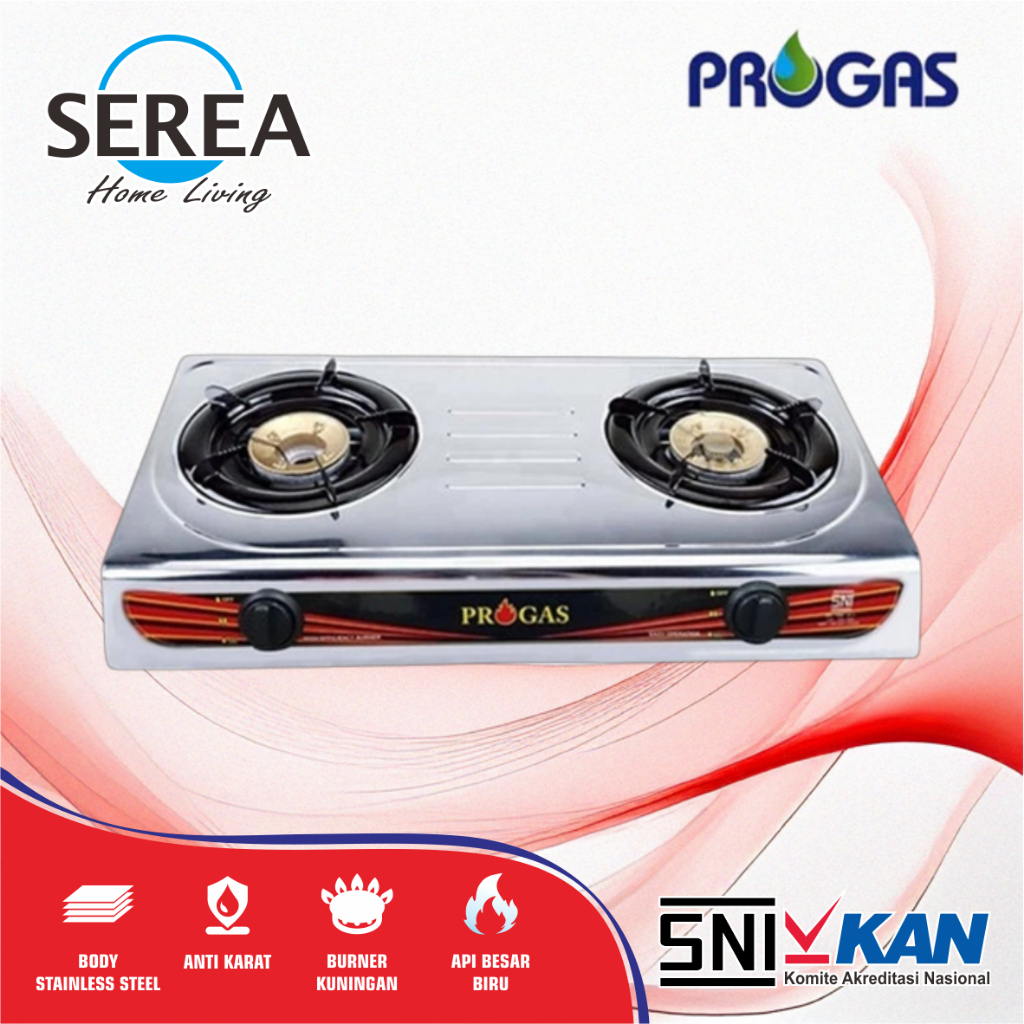Kompor Gas 2 Tungku Progas Stainless Steel PG-269 Api Biru Kualitas Premium Standar SNI Anti Karat