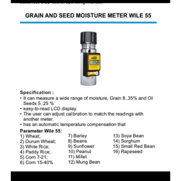 Wile 55 Grain Moisture Meter | Wile55 Grain moisture Meter Pengukur Kadar Air pada Biji