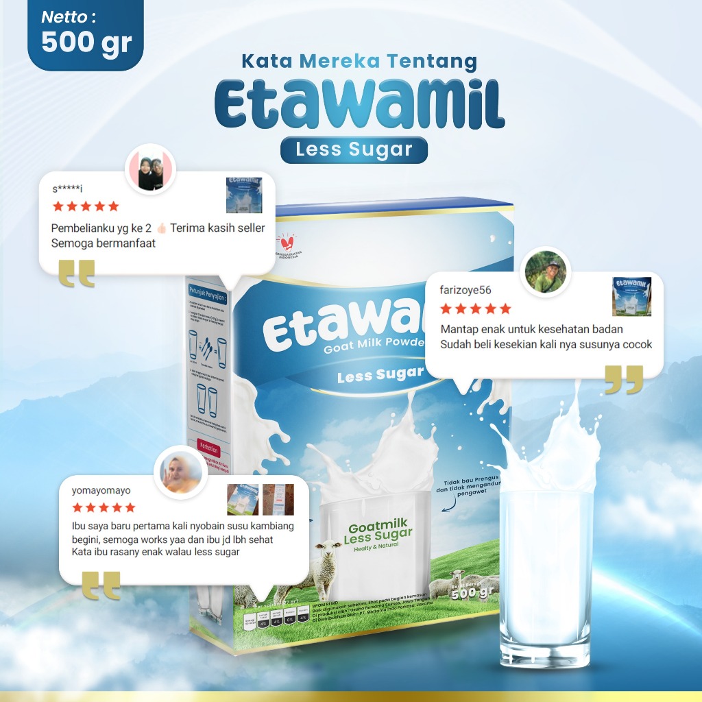 TANPA GULA ETAWAMIL NON SUGAR Susu Kambing Etawa Bubuk-ORIGINAL 500gr