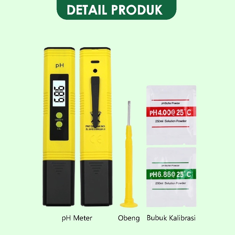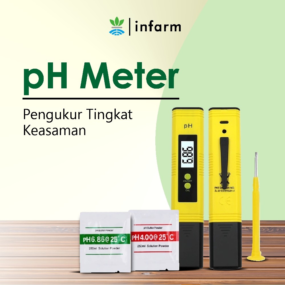 INFARM - Digital pH Meter Alat Ukur Kadar Keasaman Air Sudah Kalibrasi Lengkap dengan Bubuk Kalibrasi dan Baterai Akurat