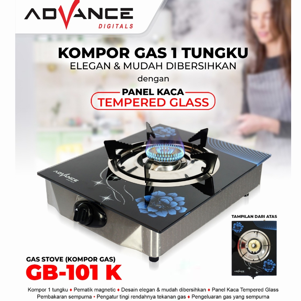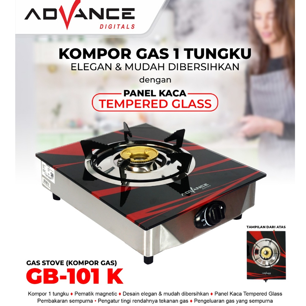 Advance Kompor Gas Kaca 1 Tungku GB-101 K - Tempered Glass