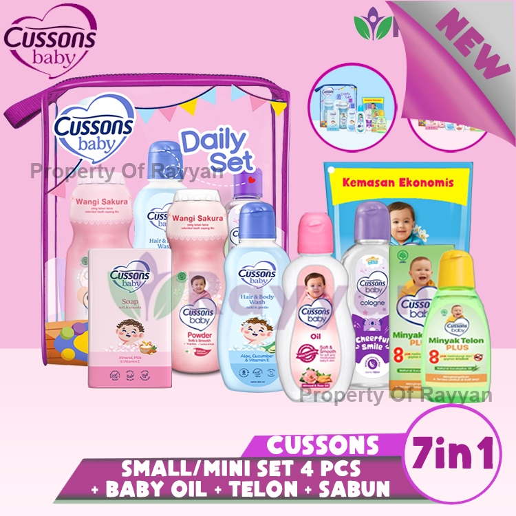 [CS]Cussons Baby Daily Essential Gift Set Small Mini Bag 7in1 Ungu/Pink/Biru Plus Sabun dan Telon| Trafel/Travel Set | P