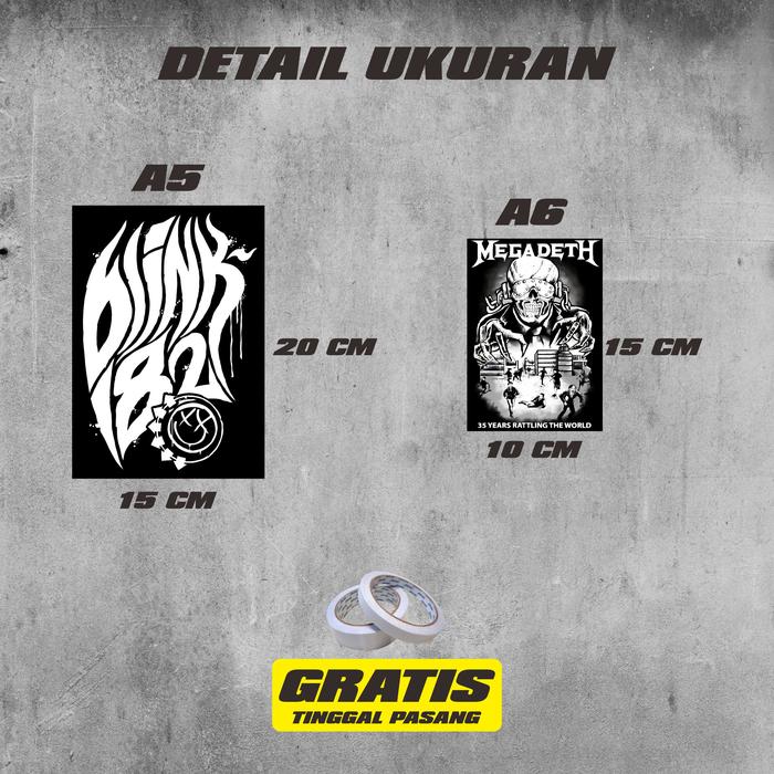 16Pcs Poster Dinding Aesthetic Band Rock Black White Ukuran A6/A5 + Free Perekat 1Pcs - A5 (15X21Cm)