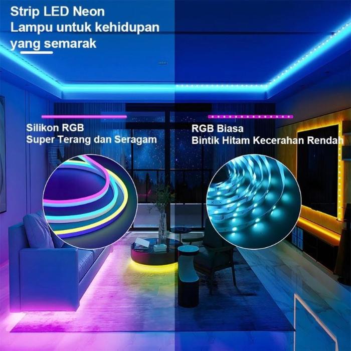VINNATSU PAKET LED NEON FLEX RUNNING RGB 5M 5 METER DC 12V / USB 5V SENSOR BLUETOOTH SUARA + APP CONTROL + ADAPTOR + REMOTE CONTROL LED KAMAR LAMPU LIGHTING - 5M STRIP NEON-A