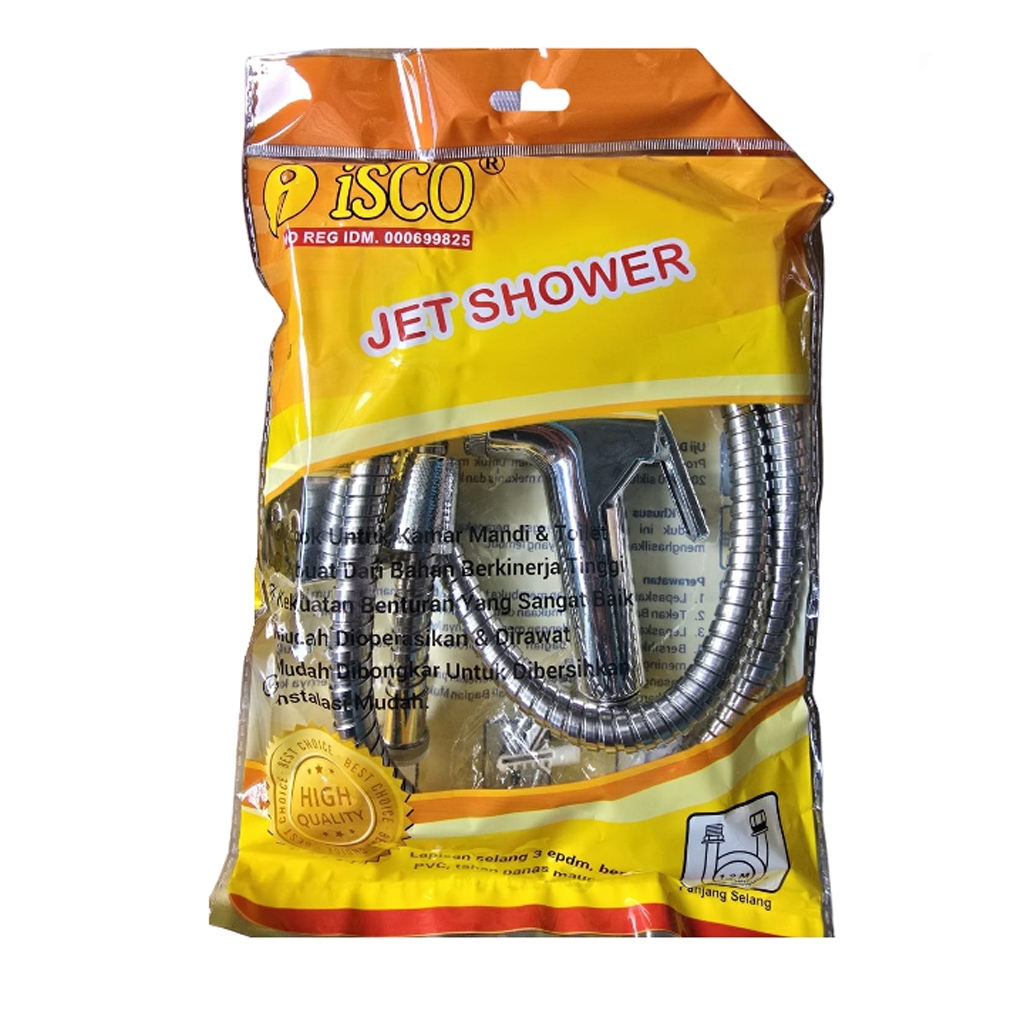 ISCO SHOWER CEBOK JET BIDET KAMAR MANDI KEMASAN PLASTIK SELANG 1.2M WARNA HITAM/PUTIH SILVER