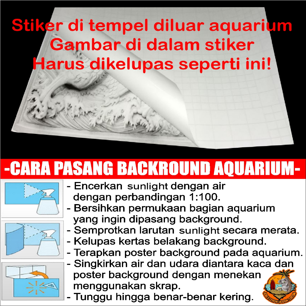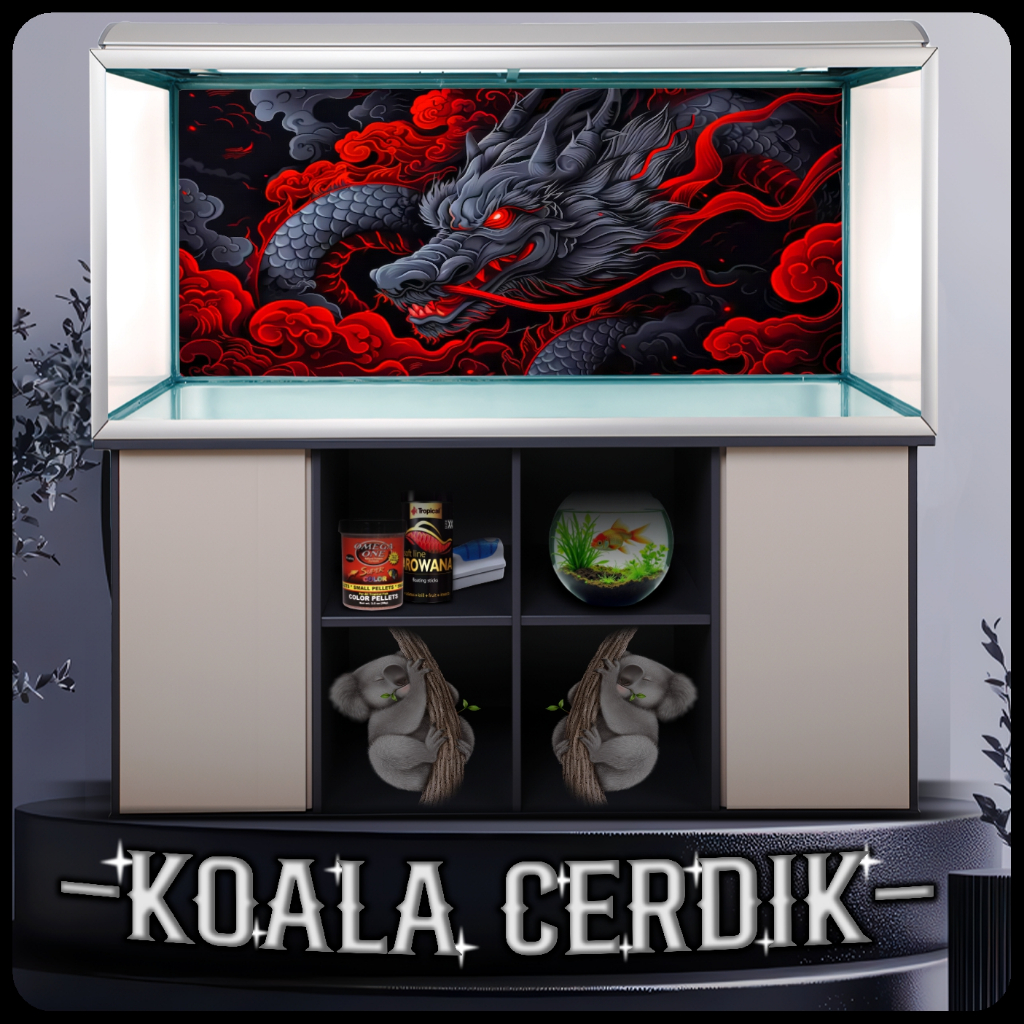 Sticker Wallpaper Background Aquarium Naga Dragon Premium || Stiker Vinyl Aquascape Naga Dragon Tahan Lama