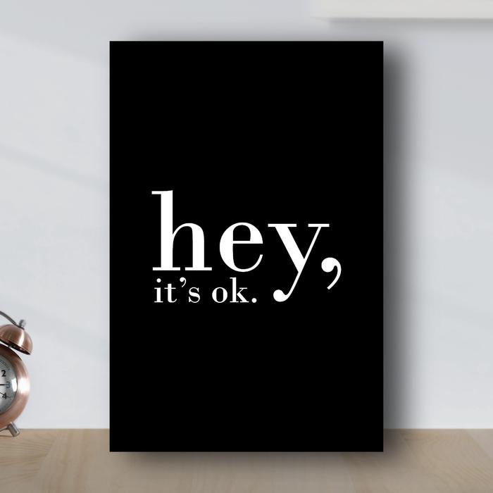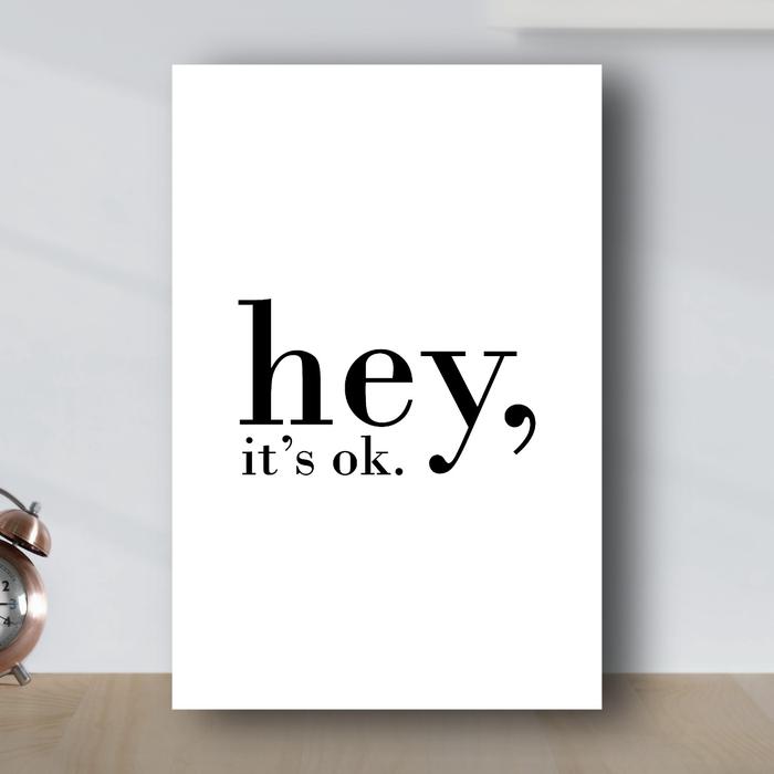 Poster Tipografi Hey, It'S Ok Hiasan Dinding Minimalis - Poster Kayu - Putih