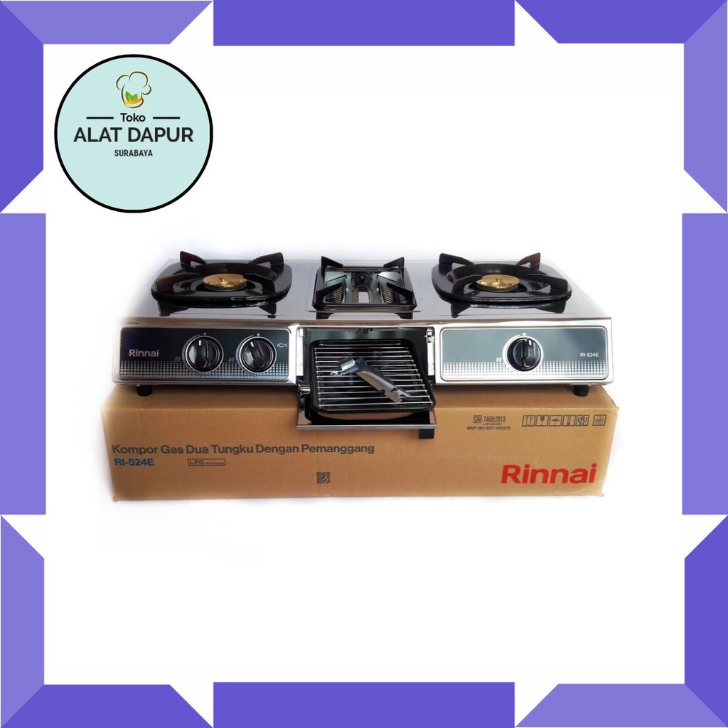 Kompor Gas 2 tungku RINNAI RI 524E - 524 E - RI524E - RI524 + Panggangan Original