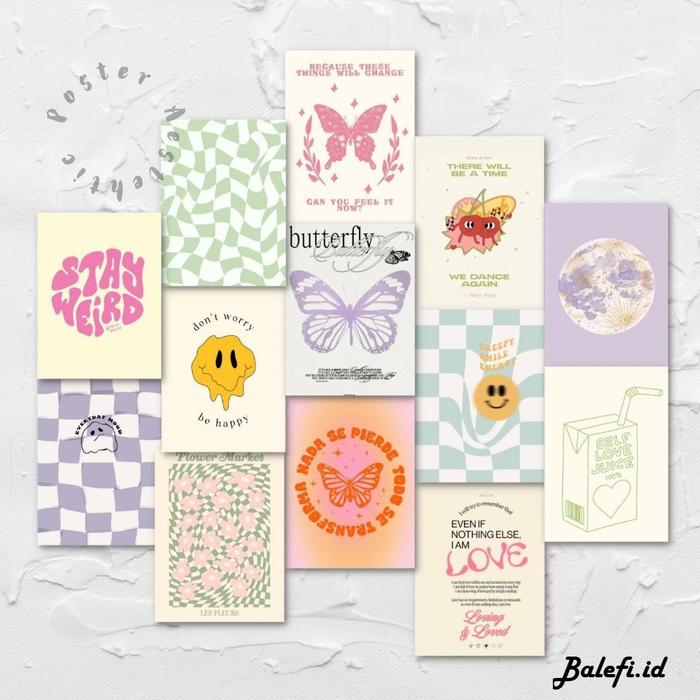 30Pcs Poster Kamar Aesthetic Pastel | Walldecor Ala Korea | Poster Dinding Aesthetic - P4Stel, 30