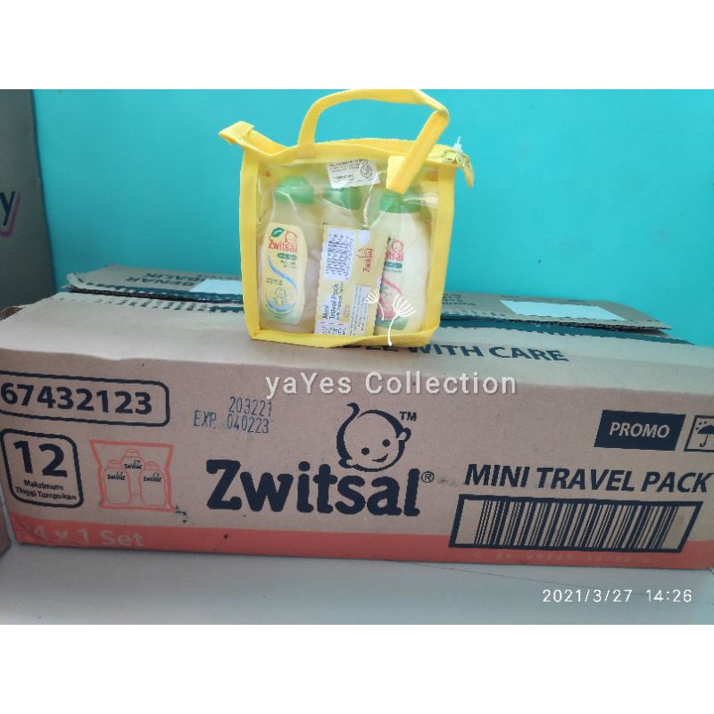 Mini travel pack isi 3 + Waslap zwitsal baby with minyak telon paket tas travelling hair body lotion powder switsal