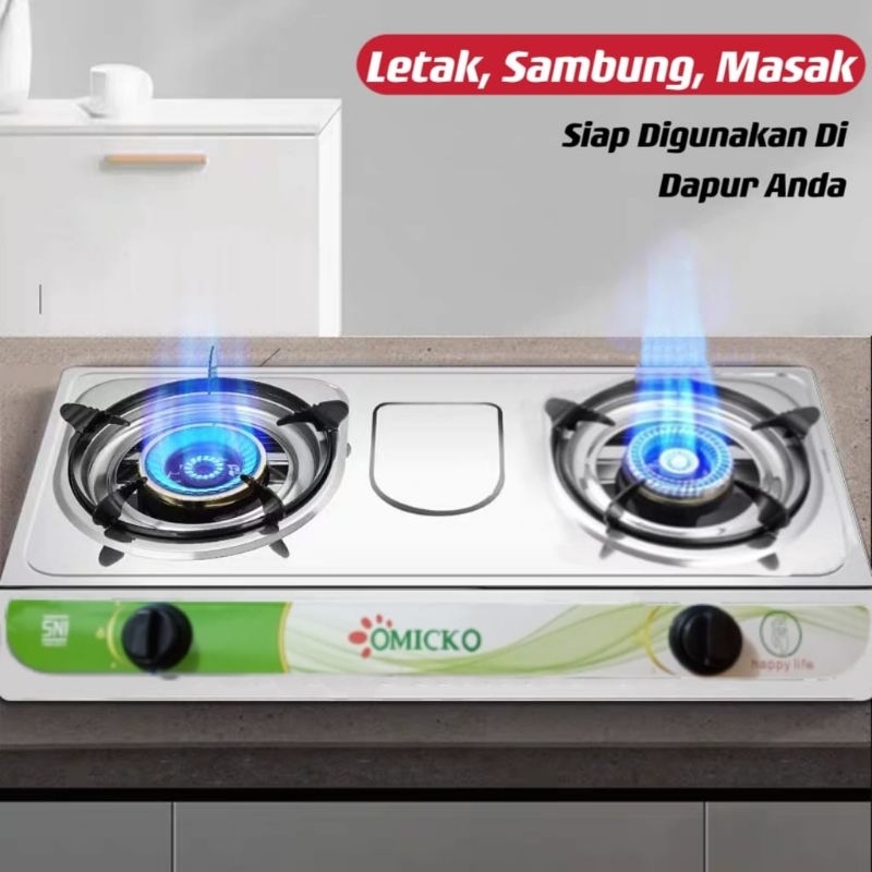 Kompor Gas 2 Tungku OMICKO / Kompor Gas Stainless Steel Anti Karat / Kompor Gas Omicko
