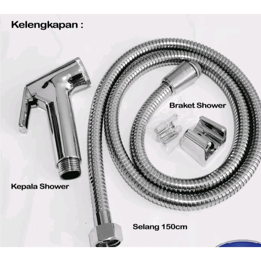 JET SHOWER KLOSET SET 3PCS CHROME SELANG FLEXIBLE BIDET CEBOK TOILET