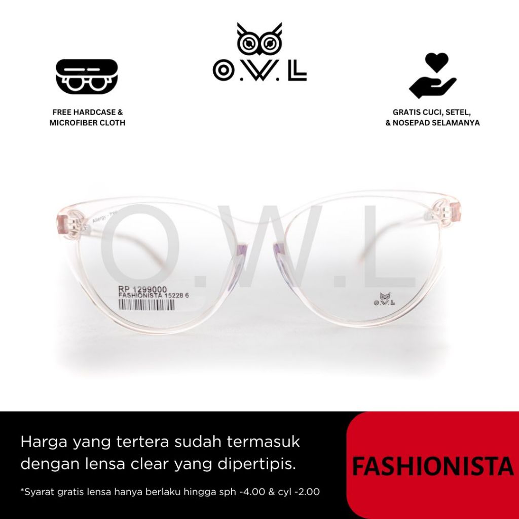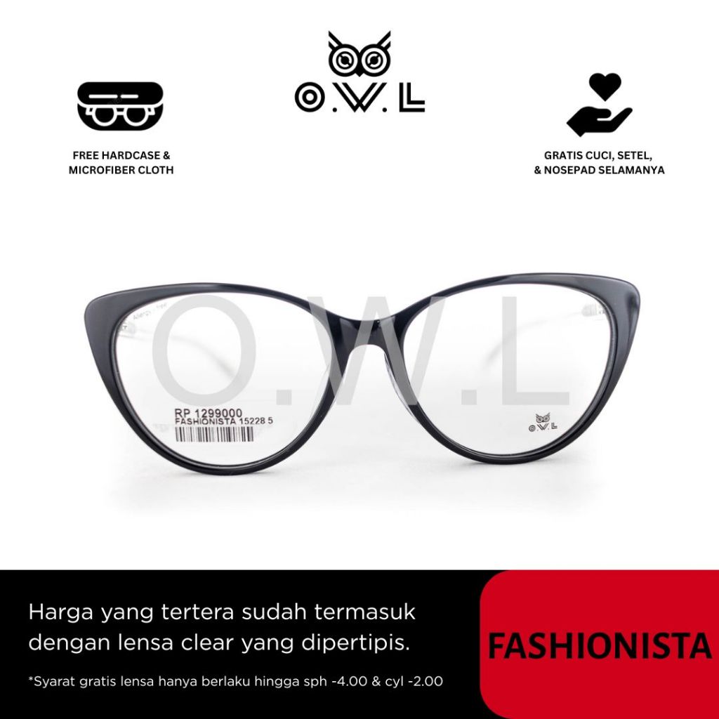 O.W.L Kacamata Frame Cat Eye Fashionista 15228 Wanita (Termasuk Lensa)