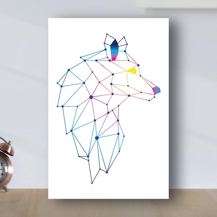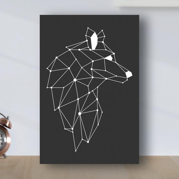 Poster Minimalist Geometric Serigala - Poster Kayu Mdf - Putih