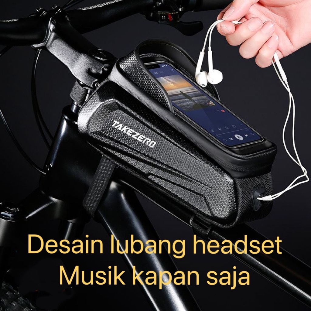 Jual Tas Sepeda Anti Air dengan Layar Sentuh & Lubang Headset – Bisa Dipasang di Setang _ Rangka Depan _ Untuk HP & Akse