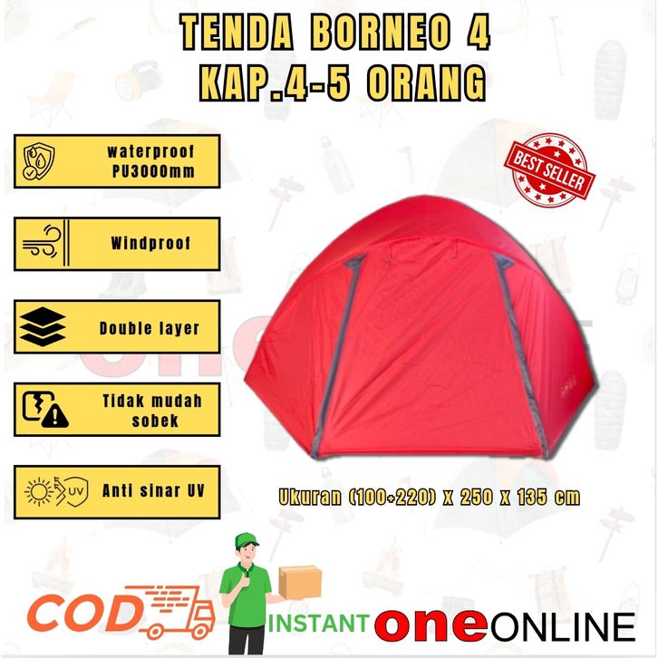 Tenda BORNEO 4 / Tenda Camping Dome Kap 4 -5 Person Double Layer