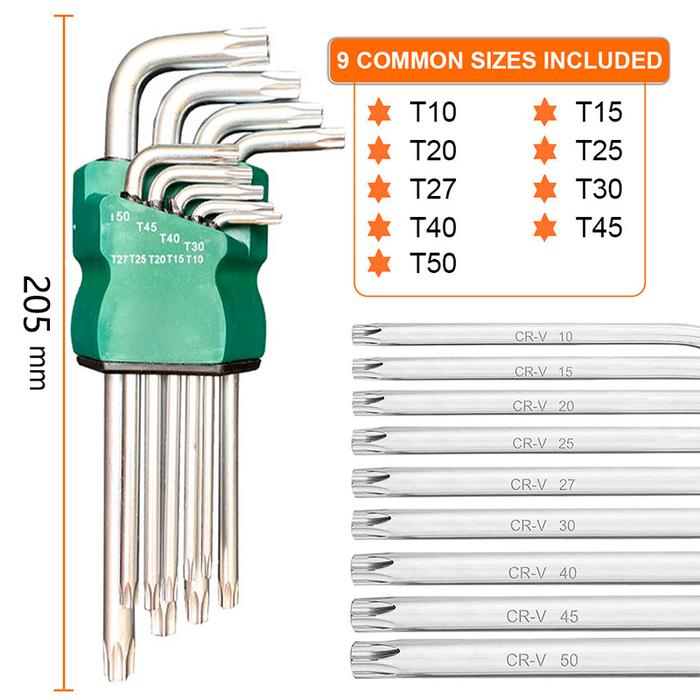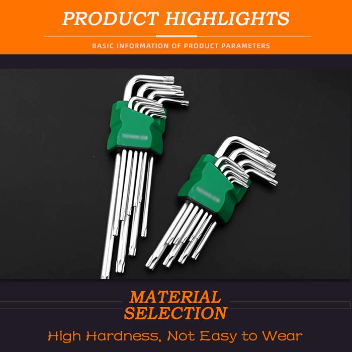 Kunci L Bintang Set 9 pcs Hexagonal T10-T50 Tamper Panjang Hex Torx Wrench