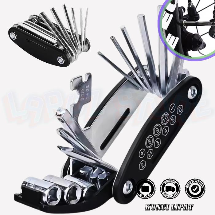 Kunci Lipat L Portable Reparasi Sepeda Obeng Shock Alat Serbaguna 15 in 1 Repair Tool Pas Hex Stainless