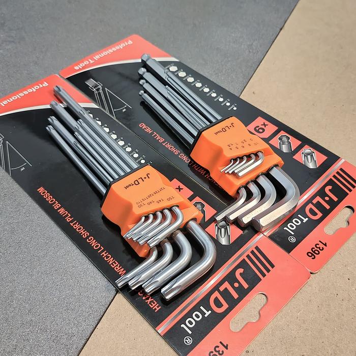 2 Set Jld 9 Pcs Kunci L Torx Bintang/Hex Bola/ Panjang Dan Pendek Cr-V Buat Buka Honda Yamaha - Bintang Pendek