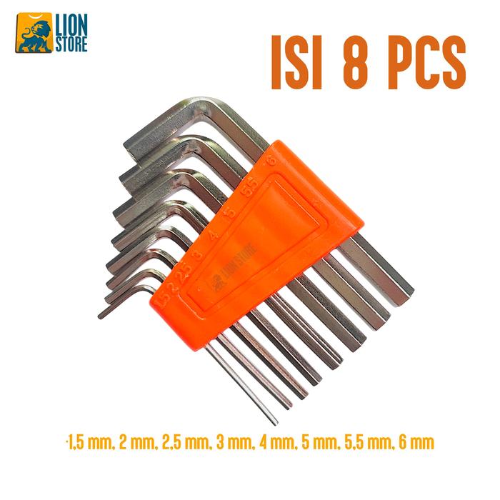 VHT KUNCI HEX KEY L FLAT SET 8 PC 1.5 - 6 MM PENDEK / KUNCI L SET Lengkap