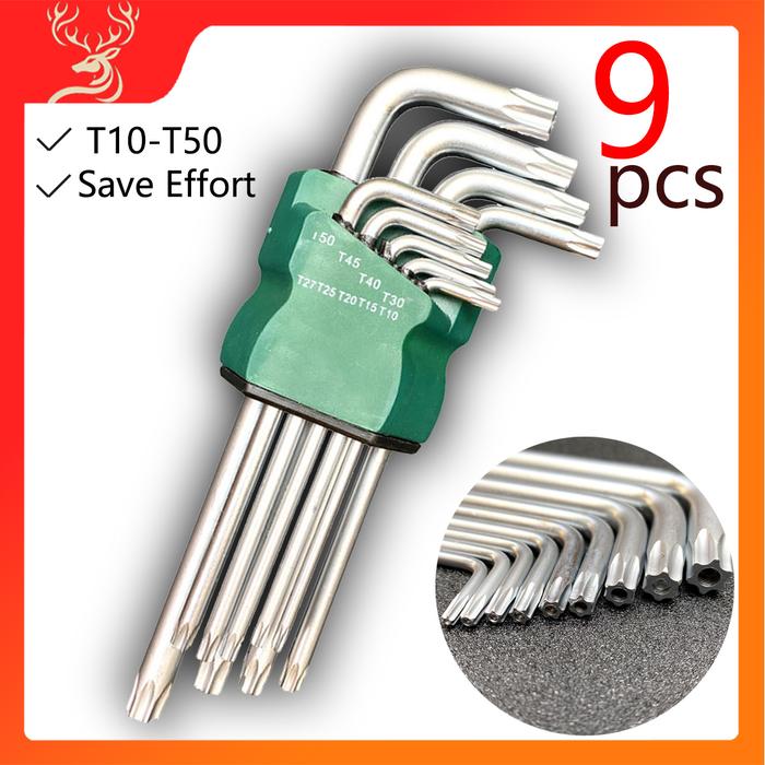 Kunci L BINTANG Set 9pcs T10-T50 Ball Point Hex Key Bahan Vanadium Chrome Hex Torx Wrench