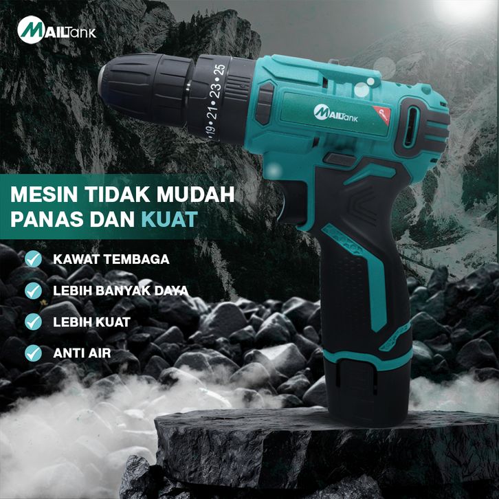 MAILTANK SH19 Bor Baterai 12v Mesin Bor Tangan Cordless Drill Bor Tanpa Kabel Set Bisa Bolak Balik