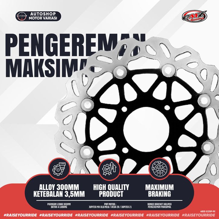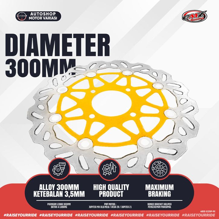 [Star] Piringan Cakram Depan CMZ Racing Jupiter MX Old/New 300MM Vega ZR/R New 300MM Disc Brake Model PSM Ketebalan 3,5