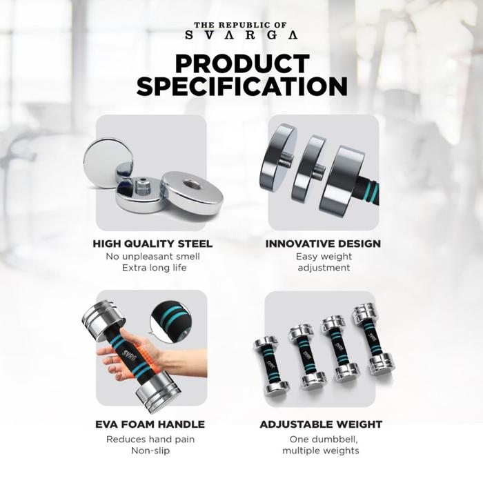 Svarga Adjustable Dumbbell - 10 KG - Dumbell Barbel Barbell - SILVER, 2.5 Kg