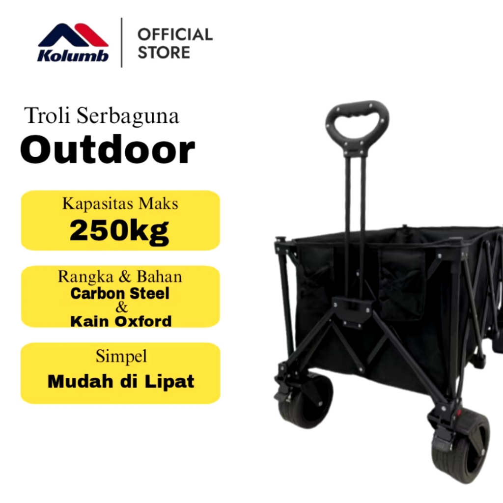 Kolumb Troli Barang Outdoor - Keranjang Belanja Rem & Roda Besar