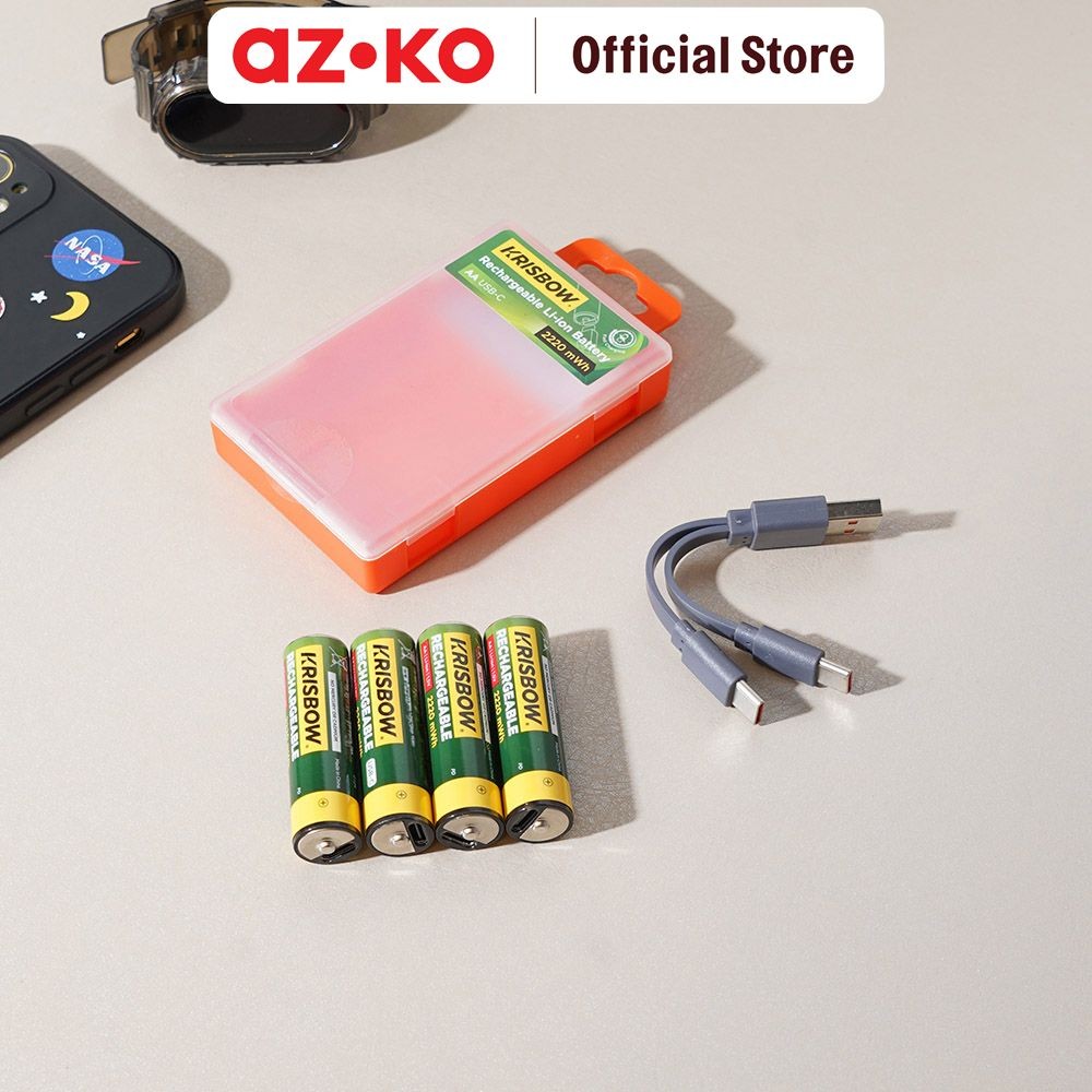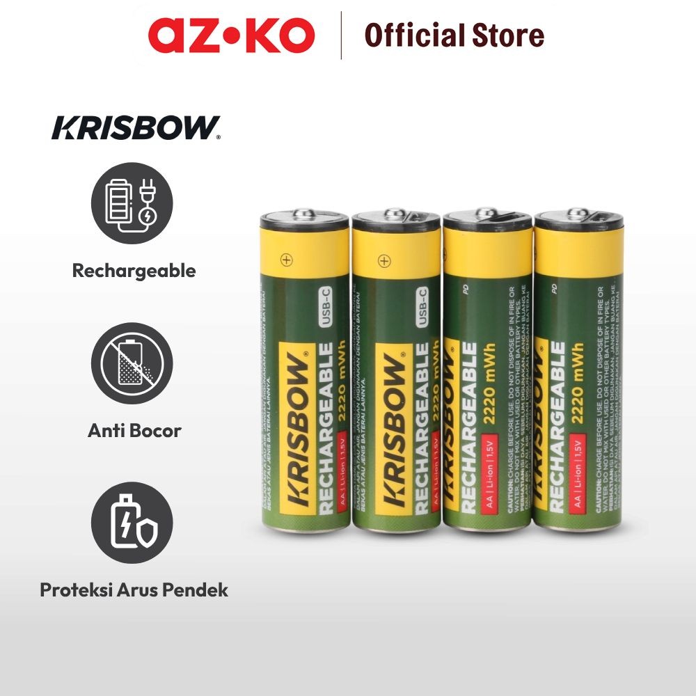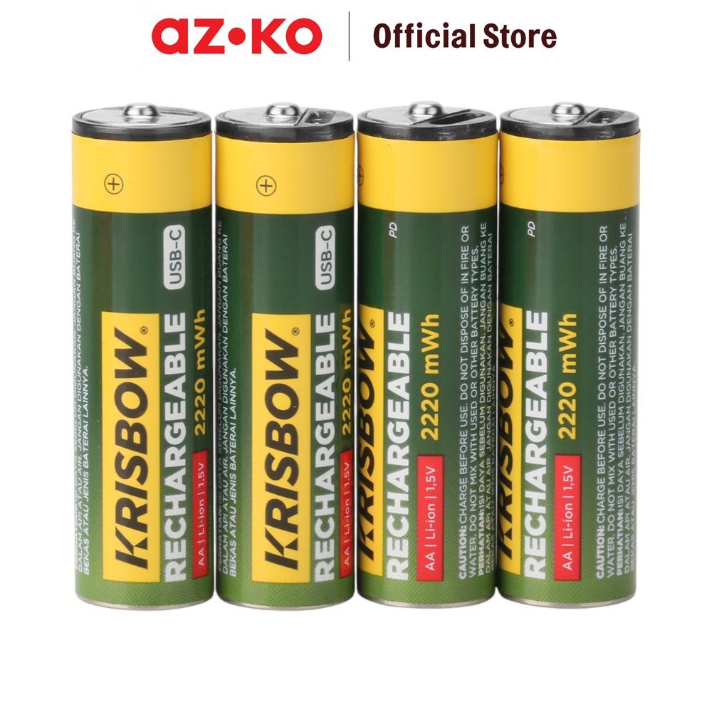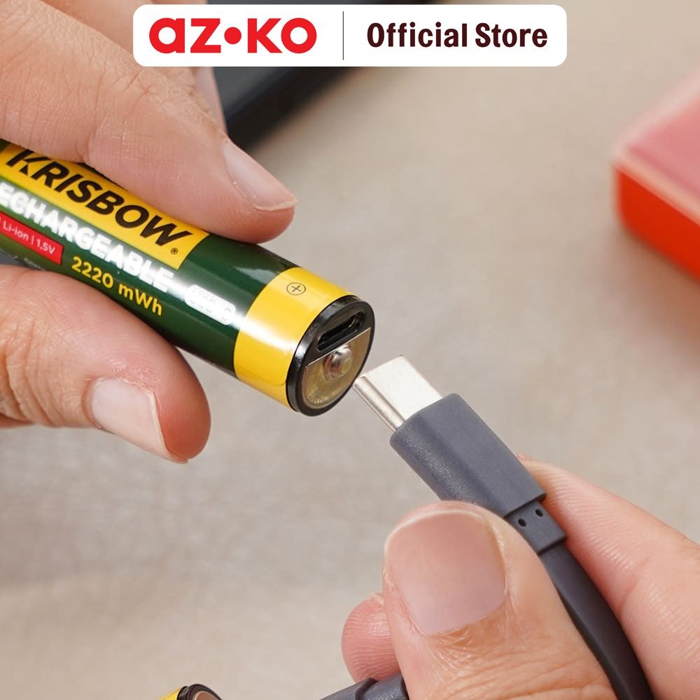 AZKO Krisbow Set Baterai Rechargeable Aa Type C - Hijau Batre Isi Ulang Peralatan Elektronik Battery Rechargeable