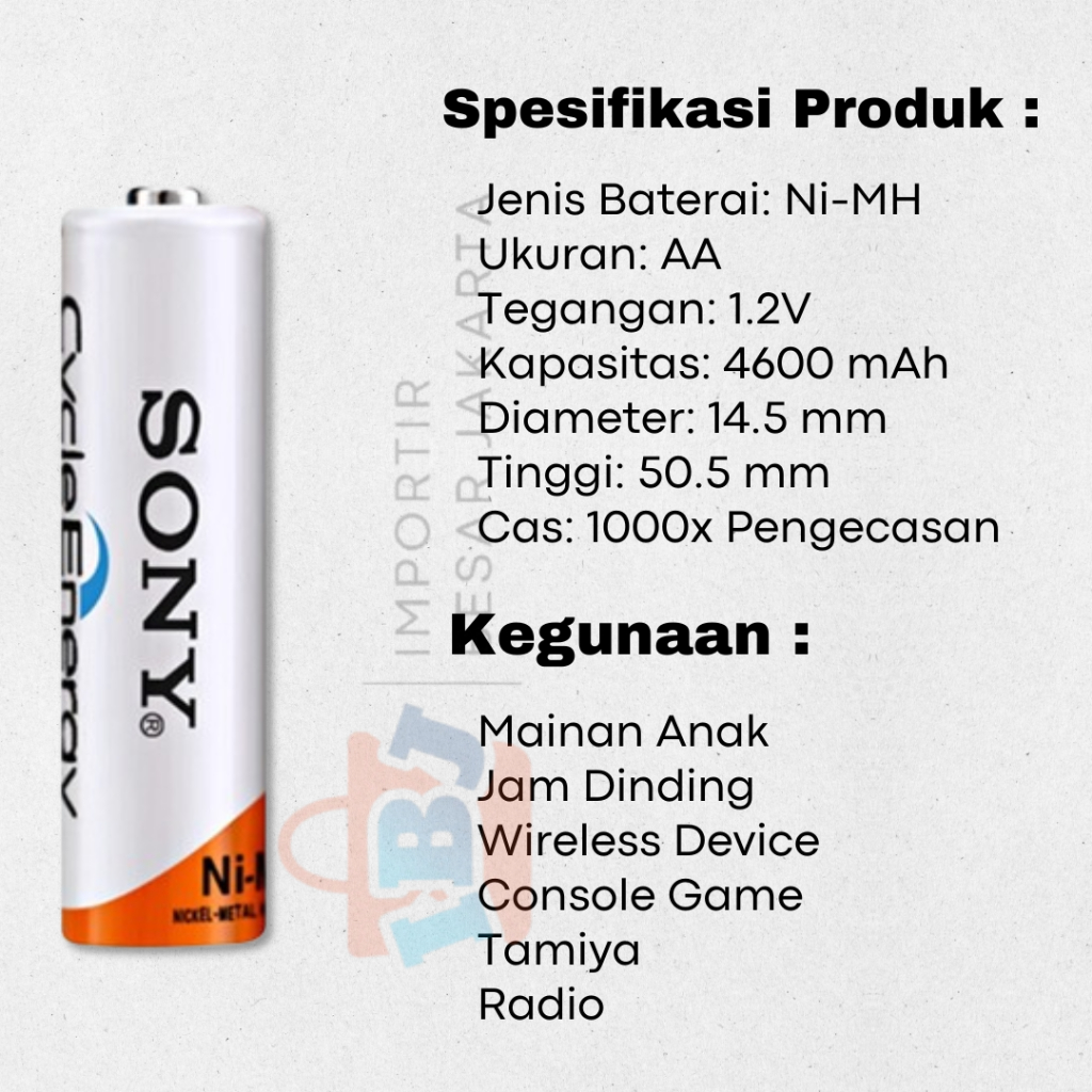 BONUS CHARGER!!! Baterai AA Sony 4600mAh Isi 4 Cas Rechargeable Recharge dan Charger Charge Isi Ulang Murah Sony Batre A