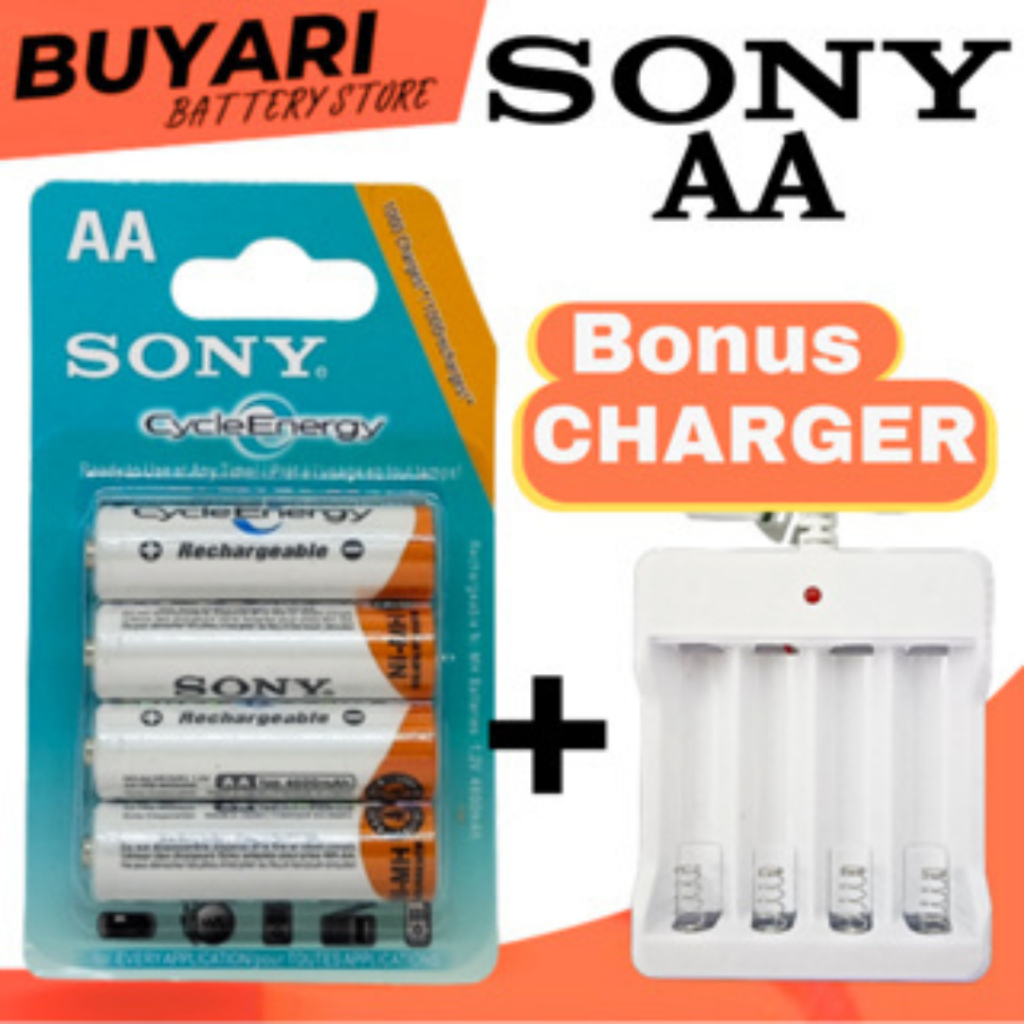 GRATIS CHARGER!! Baterai AA Sony 4600mAh Isi 4 Cas Rechargeable Recharge dan Charger Charge Isi Ulang Murah Sony Batre A