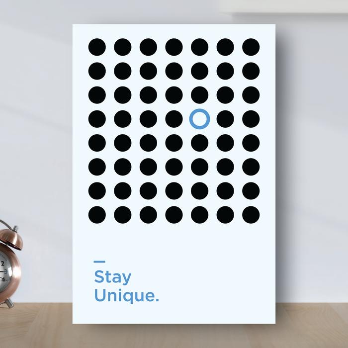 Poster Stay Unique Hiasan Dinding Minimalis - Poster Kayu Mdf - Putih