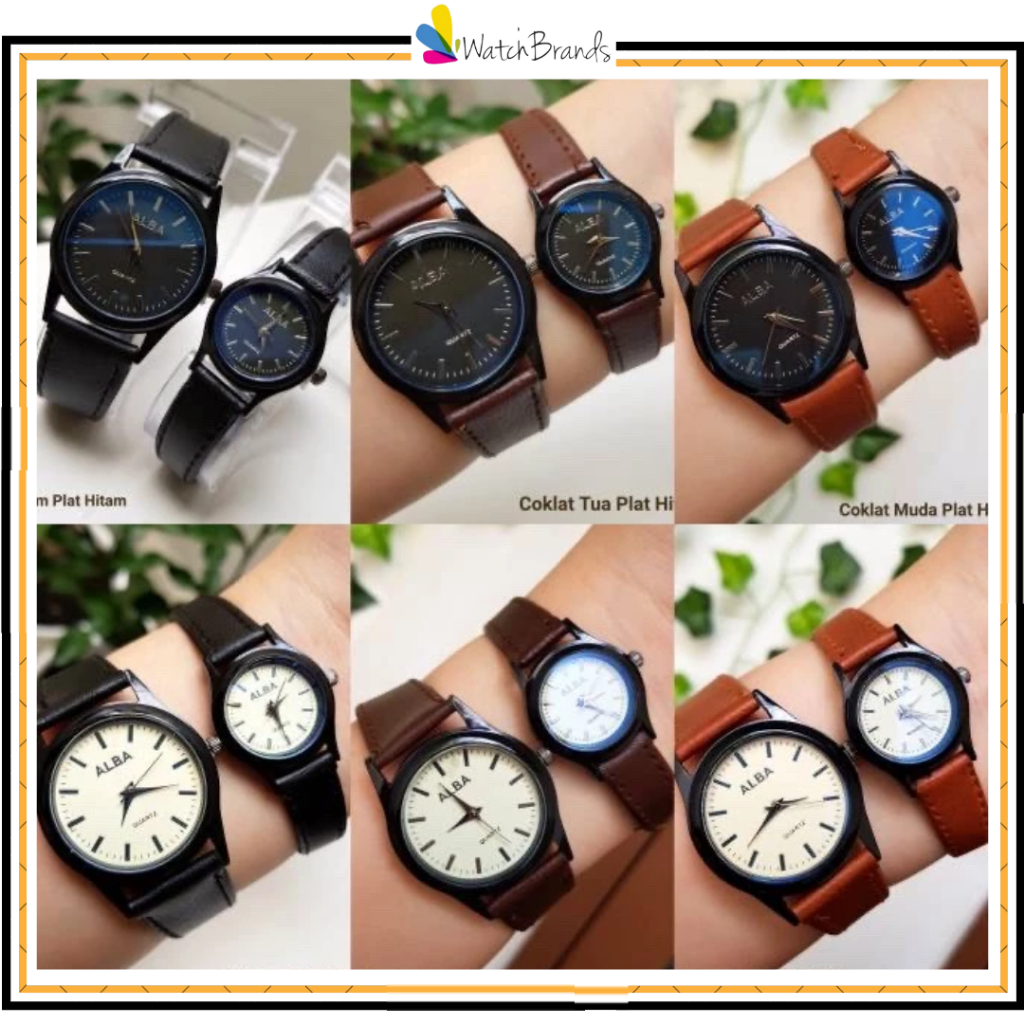 WBS JAM TANGAN COUPLE ALBA VINTAGE CASUAL GROSIR KULIT PREMIUM ANALOG PRIA WANITA PASANGAN TERBARU ANAK REMAJA MURAH PREMIUM AL008