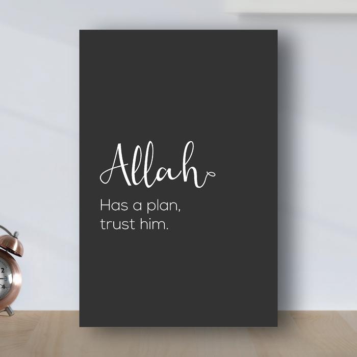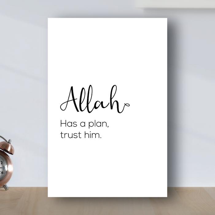 Poster Tipografi Allah Has Plan Hiasan Dinding - Poster Kayu Mdf - Putih