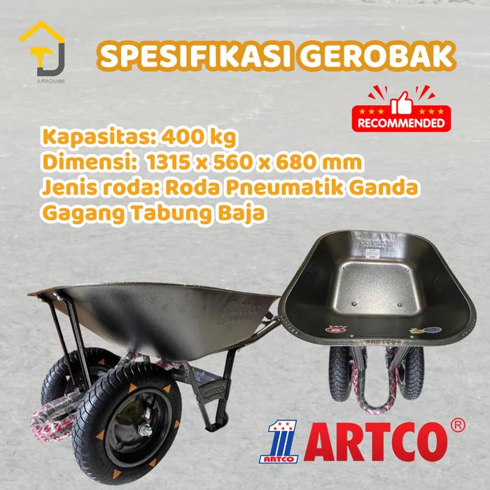 GEROBAK SORONG DORONG COR ARTCO ORIGINAL SILVER BLACK DOUBLE WHEEL GEROBAK 2 RODA - BAN HIDUP