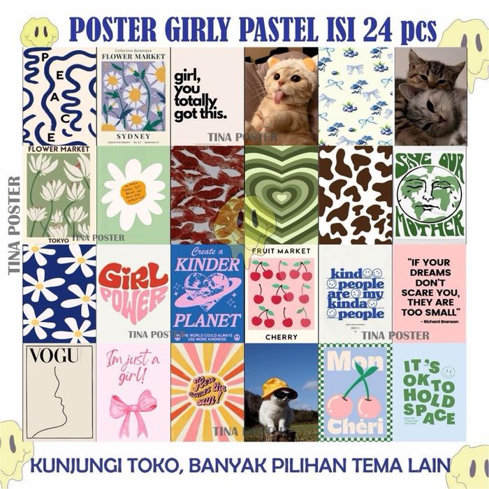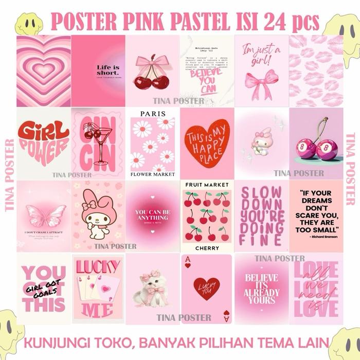 Poster Dinding Pink Pastel & Mix Pastel | Poster Coquettes | Poster Flower - Pink Isi 24