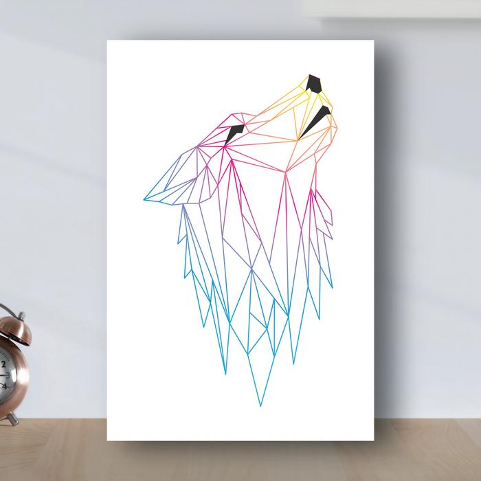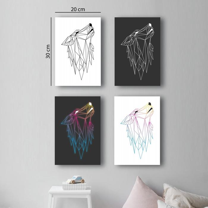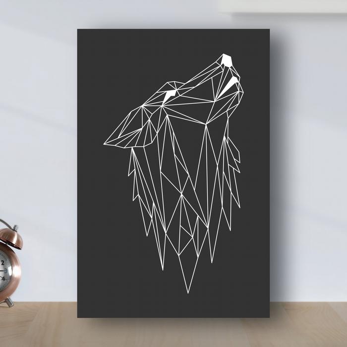 Poster Minimalis Geometric Serigala Fd1 - Poster Kayu Mdf - Putih Hitam