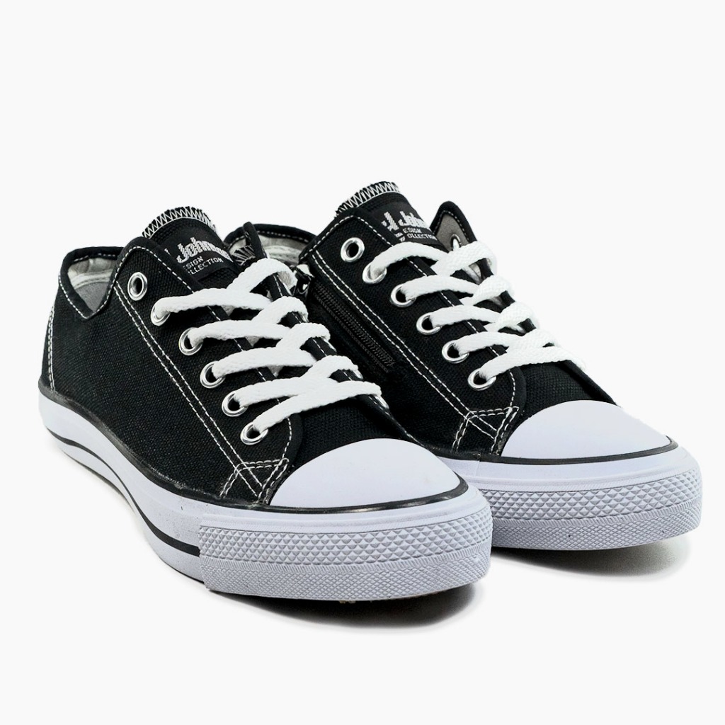 SEPATU SNEAKERS JOHNSON - ZIPPER LOWCUT (LC) BLACK WHITE