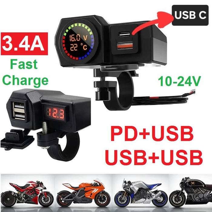 Motorcycle Digital Voltmeter Charger Motor Cas Hp Motor 2 Usb 3.1A Cas - Pd + Usb
