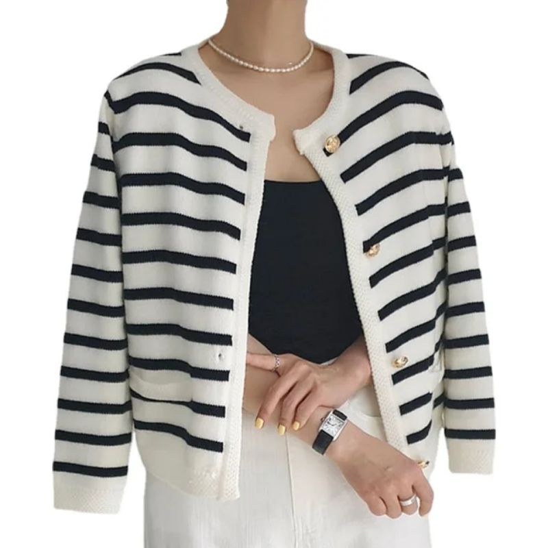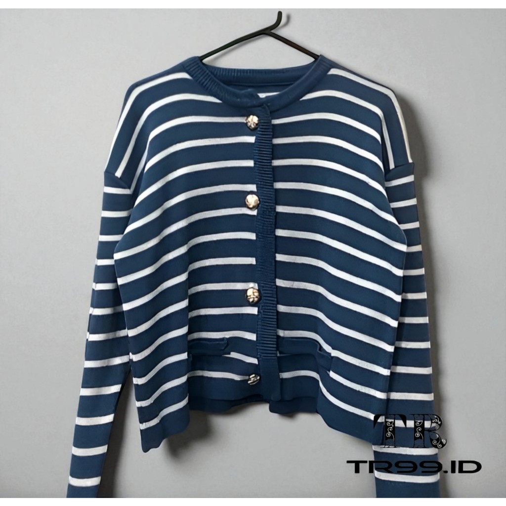 Cardigan [Cessy Cardy Strip Semi Crop] Knitwear Rajut Wanita Korea