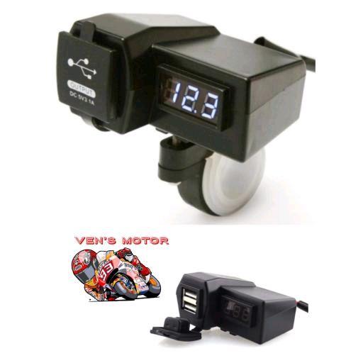 Casan Hp Di Stang Motor Universal Dual Usb Charger + Voltmeter