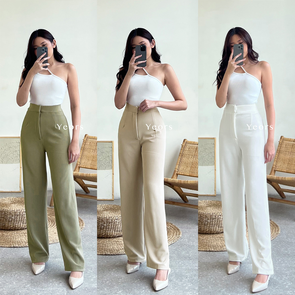 Yeors - Long Cullote Rosie Pants - Celana Murah Berkualitas Kulot Rib Knit Premium - Korean Loose Pants Trousers Wanita