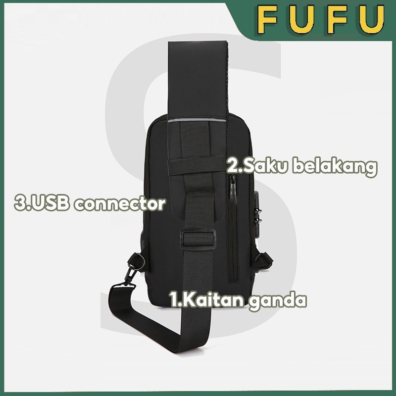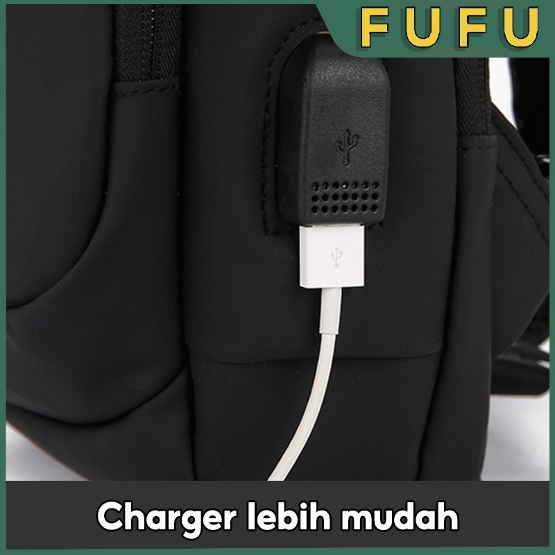 FUFU Shoulder Bag Tas Pinggang Tas Selempang USB Charger Port Pria Wanita Unisex