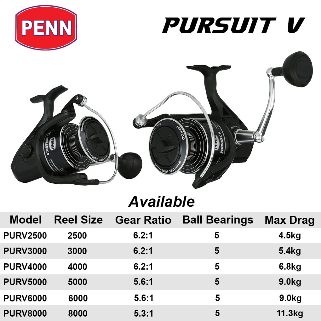 PENN PURSUIT V Spinning Reel 2500–8000 Graphite Body Saltwater Kuat Power Handle Kolam Galatama Laut