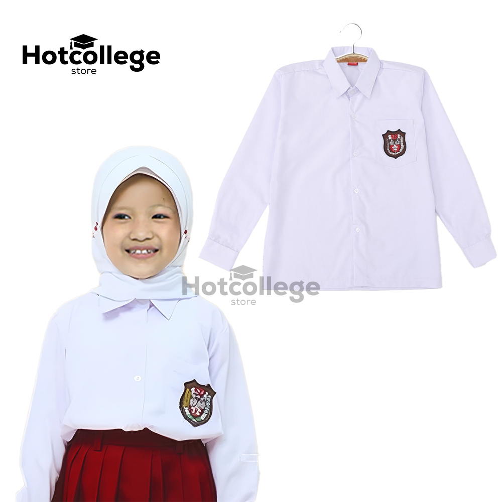 Hotcollege Seragam Sekolah SD Kemeja Atasan Putih Lengan Panjang Laki Laki Perempuan Bahan Premium Termurah Dan Terlaris
