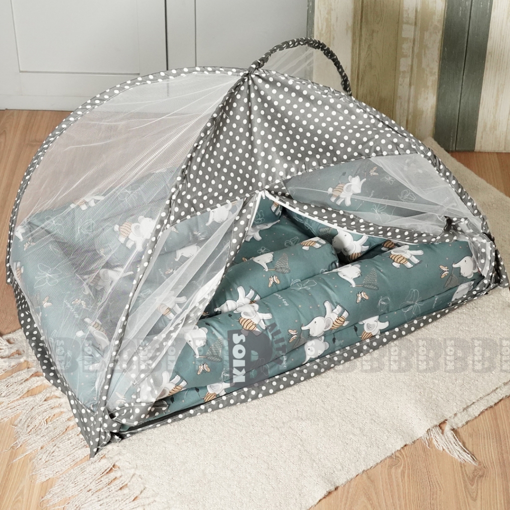 KASUR BAYI TENDA KELAMBU / KASUR BABY KELAMBU SET BANTAL FREE BANTAL PEYANG CROWN + 2 GULING BABY