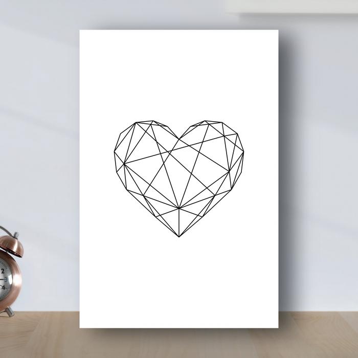Poster Minimalis Geometric Love - Poster Kayu Mdf - Putih