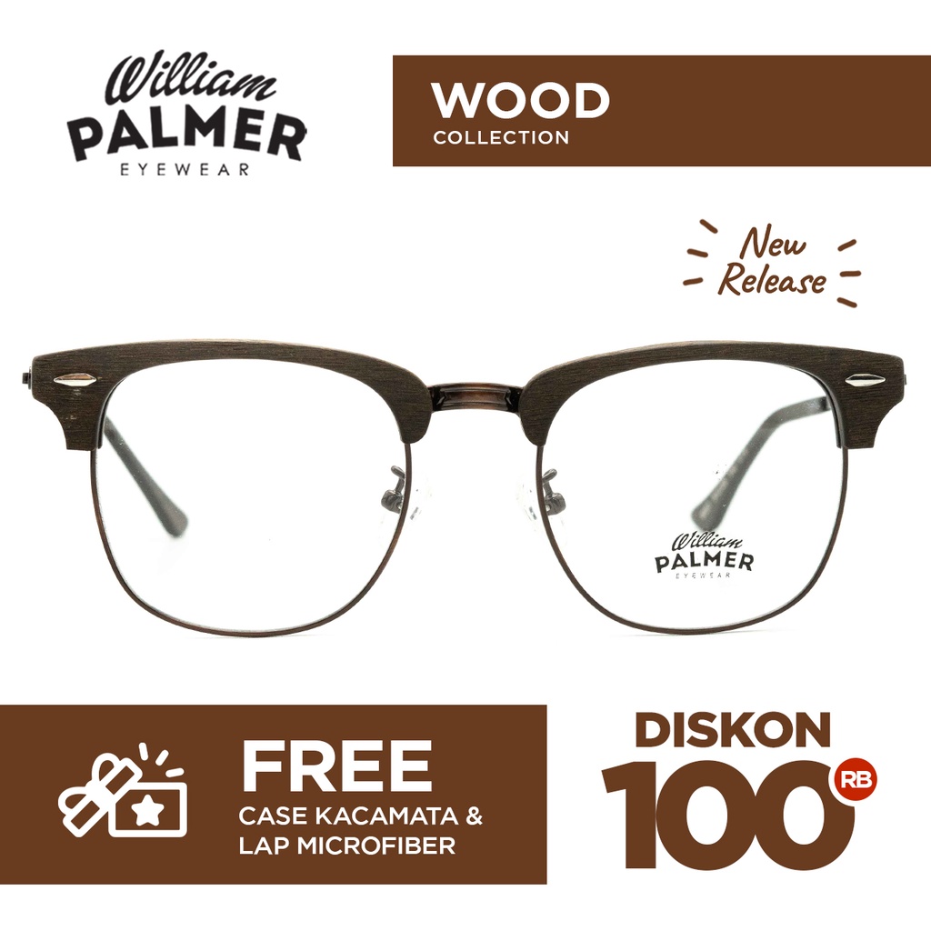 William Palmer Kacamata Pria Wanita Wood 8057 C86 Black Brown